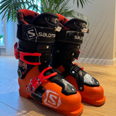 Head alpinski sett med støvler, staver og hjelm