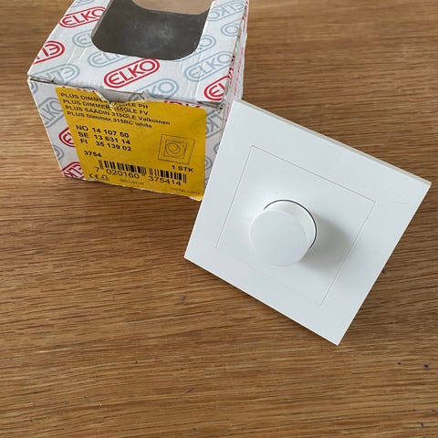 Elko Comfort Dimmer lysdimmer i svart utførelse. Veggmontert dimmer for regulering av belysning. Enheten har dreiehjul for justering av lysstyrke og standard innfellingsramme. Passer i vanlig innfelt installasjon der det er tilrettelagt for dimmer i elektrisk anlegg. Egnet for bruk i tørre innemiljøer som stue, kjøkken eller soverom, i samsvar med produsentens og gjeldende elektriske forskrifter.