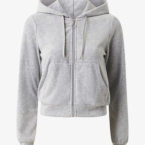 GRÅ Y VELOUR ZIP HOODIE - JENTE.