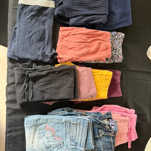 Svart treningsthights i str 146/152 fra Cubus, svart thights i str 145/152 fra Lindex, rosa joggebukse med glitter fra Molo i str 152, svarte jeans fra Kappahl i str 146, jeans i slim fit str 146 fra Cubus. Selges samlet for 500kr. Har flere klespakker til salgs, kan slå sammen og sende i en pakke om det ønskes.