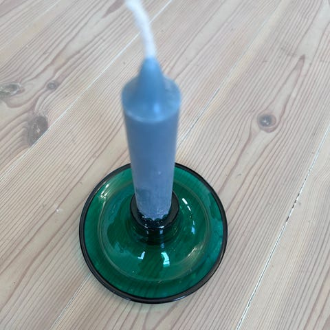 lysestake i sølvfarget glass.