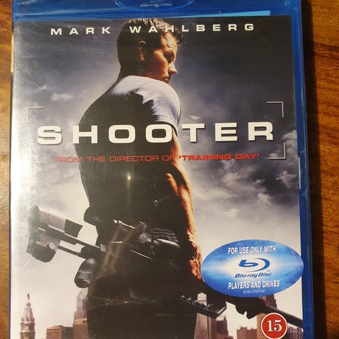 Shooter HD DVD film. Actionthriller med Mark Wahlberg i hovedrollen. Utgivelsen er på HD DVD-format, med originalt omslag og plate. Filmen er tekstet og har aldersgrense 15 år (norsk utgave kan ha tilsvarende eller høyere aldersgrense). Egnet for avspilling på HD DVD-kompatible spillere.