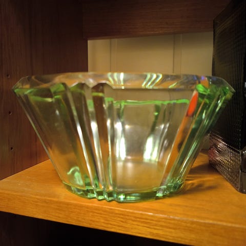 24 cm.Ø. 8 cm. dyp.Bollen har ingen skår, men bruksspor på bunnen under . Dette møsteret ble lansert av Høvik like før nedleggelen i 1933. Den har vært i familiens eie siden 1940 tallet og har vært flittig brukt til desserter eller salat.