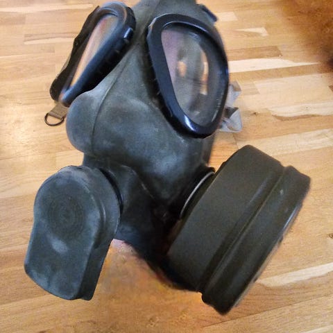 Gassmaske med tilbehør og bruksanvisning i orginalveske selges.