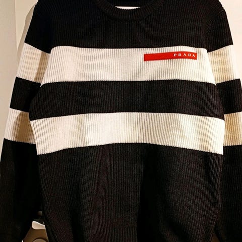 Prada lue i svart ull for herre i one size. Luen er ribbestrikket med oppbrett og har en trekantet Prada-logo foran. Materialet er ull og cashmere, som gir varme og komfort. Passer til bruk på kalde dager og som et enkelt hodeplagg i hverdagen.