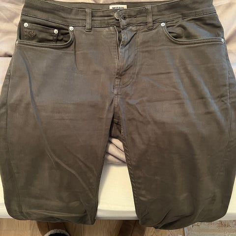 Pent brukt bukse fra Morris. Dette er en brushed bukse som kan minne litt om moleskin. Utrolig behagelig og gir en ekstra kul detalj. Buksen er i størrelse 32/34, men er lagt opp litt i lengden. 103 ytterben, 73 innerben. Omtrent som en 32/33. Jeg er 187 og den sitter pent til ankel med en liten folde.