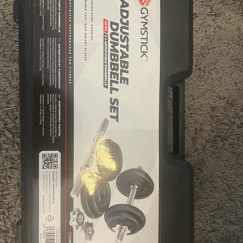Manualer med skiver . Adjustable dumbell set på 2x10 kg. 8 skiver . Pris nytt 1100kr.
