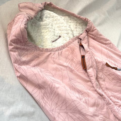 EASYGROW Hood Wool er bestselgeren som nå har kommet med vaskbar ull i ryggen. Posen har forlengerdel, flanellpute (gulpeklut) og hull til 5-punkt sele med klaffer over for minimalt varmetap og anti-skli i ryggen. Blåser det surt kan åpningen snurpes godt sammen rundt barnets hode.