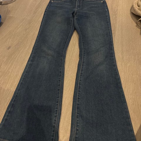 Levi's 720 High Rise Super Skinny jeans i blå denim for unisex i størrelse 164. Buksen har høyt liv og super skinny passform. Klassisk femlommersmodell med glidelås og knapp i front, samt baklommer med karakteristisk Levi's-søm og liten logoetikett. Materialet er denim, som gir et slitesterkt og strukturert stoff.