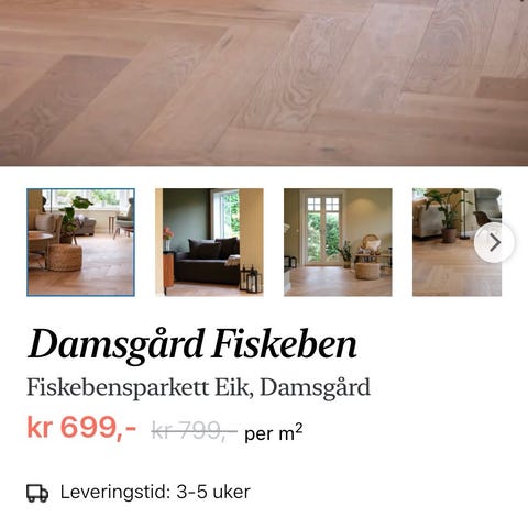 Parkett i fiskebeinsmønster - overskudd som kan benyttes å lage bord etc med.