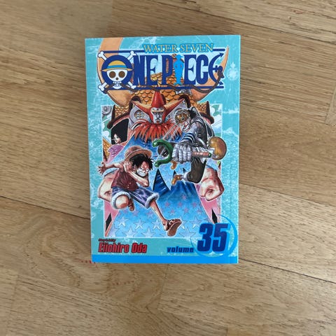 Japansk tegneserie (manga) i bokformat med fargeomslag. Inneholder del av One Piece-serien med kjente figurer fra serien på omslaget. Egner seg for lesere som følger One Piece-historien og ønsker dette volumet i samlingen sin.