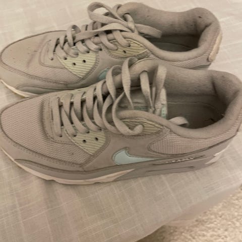 Nike Air Max sneakers i grå farge, størrelse 42. Modellen har klassisk Air Max-såle med synlig luftpute i hælen. Overdelen er i en kombinasjon av tekstil og syntetiske materialer med lisser foran. Skoene har polstret hælkappe og krage for økt komfort, samt yttersåle i gummi med mønster for grep. Passer som hverdagssko eller til lett trening og fritidsbruk.