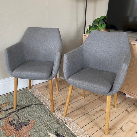 Lekre Scapa spisestoler i grått stoff og eikeben – selges rimelig
