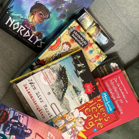 Bokpakke med ulike barnebøker og tegneserier. Pakken inneholder blant annet flere bøker fra serien «Amuletten», bøker fra serien «Kattekrigerne», to bøker fra serien «En pingles dagbok» samt et Donald Duck-album. Bøkene er i norsk språk og passer for barn og unge lesere som liker fantasy, humor og tegneserier.