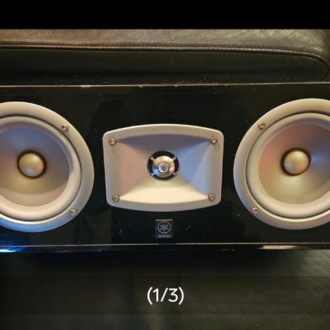 Pen senterhøyttaler med brakett for vegg/stereobenk. Mangler emballasje.