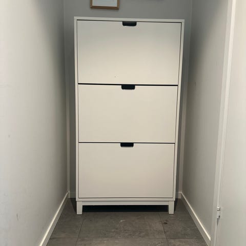 Selger et STÄLL skoskap med 3 rom i hvit utførelse. Skapet er i svært god stand og har stått i et røykfritt og dyrefritt hjem. Praktisk og plassbesparende løsning som holder gangen ryddig.
