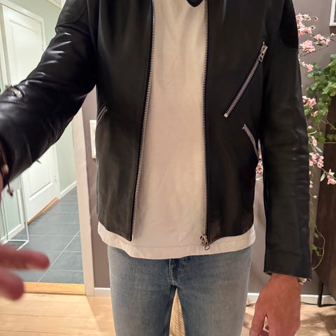 Tøff neste ubrukt skinjakke i tykt skin. Jakken har ikke MC polstring, så egner seg til daglig bruk og kanskje ikke MC kjøring.