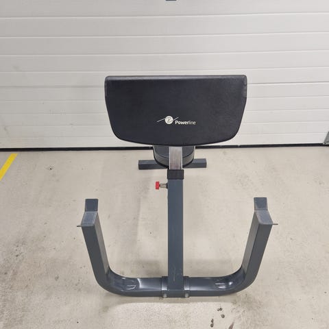 Preacher curl-benk i svart utførelse. Benken har polstret armlene og sete med kunstskinn-trekk. Stabil stålkonstruksjon med bred fot for god støtte. Egnet for biceps med manualer eller vektstang i hjemmegym eller treningsrom.