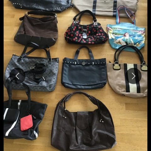 Forskjellige vesker som selges billig. Noen er ikke brukt og andre er litt brukt.