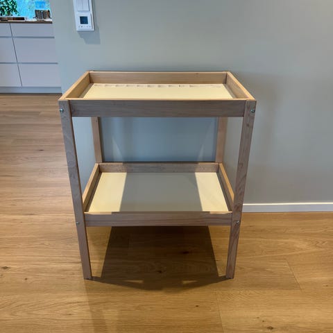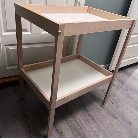 IKEA stellebord i trehvit selges.