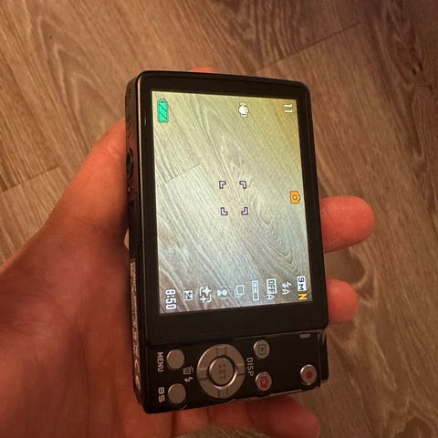 Kameraet er i veldig god stand og ser ut som nytt. Men det har en feil. Når man slår på fotomodus, går objektivet ut og trekker seg umiddelbart inn igjen. Alt ser ellers normalt ut, uten unormale lyder eller lignende. Menyknappen fungerer som den skal, men når man trykker på utløserknappen for å ta bilde, går objektivet ut og trekker seg inn igjen med en gang. Jeg vet ikke hva problemet er. Selges som den er, uten garanti, reklamasjon eller retur, som reparasjonsobjekt.