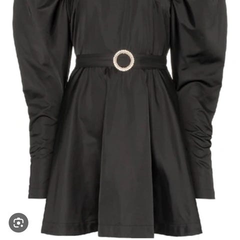 Lang, gul omslagskjole fra Rotate med små søte blomster, lange ermer og «puffy»-skuldre.