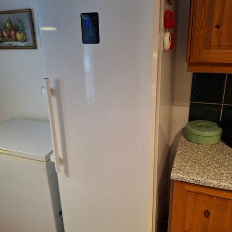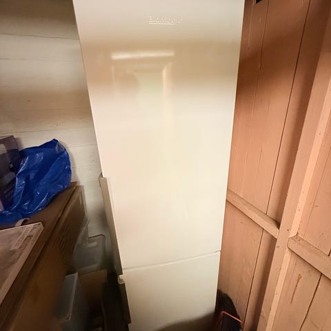 Kjøleskapet fungerer helt som det skal, men har en skuff som er sprukket, noen tusjmerker og man må vaske det selv. Gis bort mot henting.