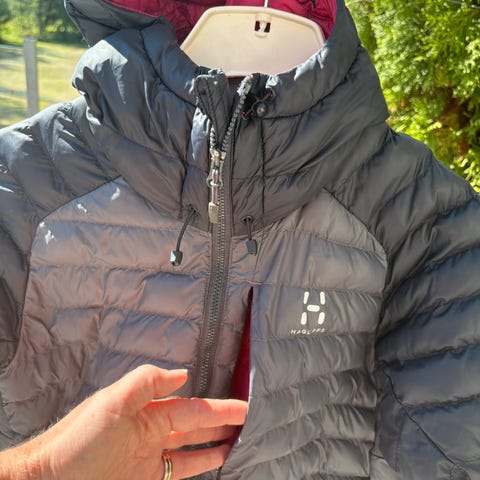 Varm og god dunjakke med mye bruk igjen. Har en liten rift på venstre underarm (se bilder).