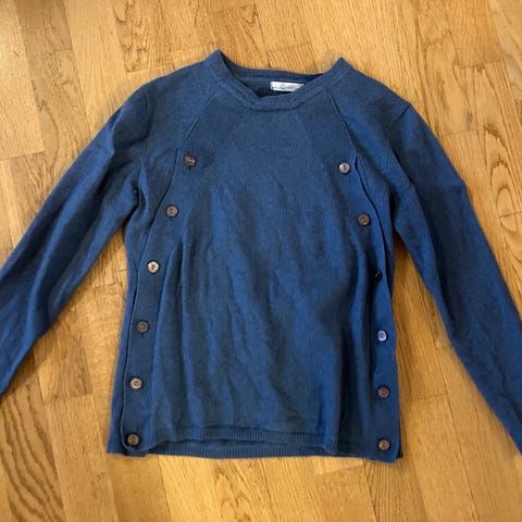 Romslig ammegenser i ull-bomullsblanding som kan også brukes under graviditeten. Fin grå-grønn farge.