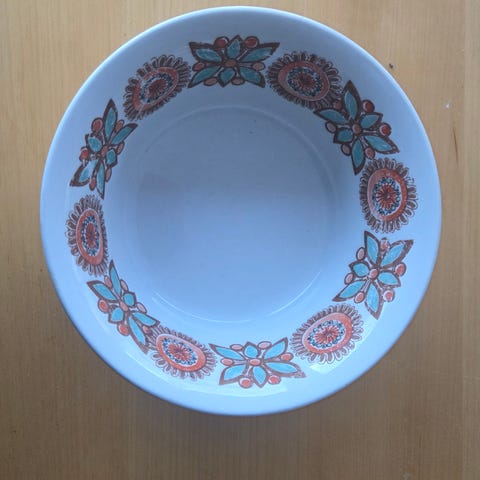 Skål D: 18,5 H: 6,5 til serviset Astrid fra Figgjoflint. Design Turi Gramstad Oliver. I fin stan, friske farger og blank glasur.