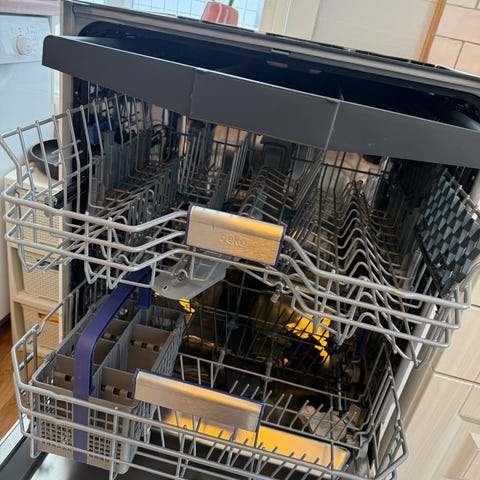 Den har også en ComfortLift-funksjon som gjør at du kan løfte opp den nedre skuffen for høyere komfort når du setter inn i eller tar ut av oppvaskmaskinen.