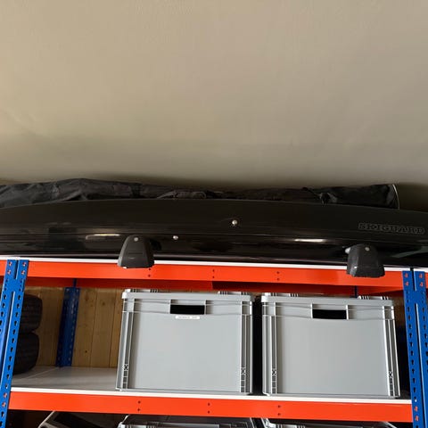 Skiguard 860 T skiboks lakkert i Belgravia Green Metallic m/ innvendig LED lys. Modellen er en lav og aerodynamisk takboks. Egnet til transport av ski, snowboard og annet bagasjevolum på taket av bilen. Originale Land Rover Range Rover takbøyler. Skiboksen er brukt en sesong på 2023 Range Rover lagret innendørs etterpå. Noen skader på toppen se bilder også mangler nøkler til boks og bøyler.