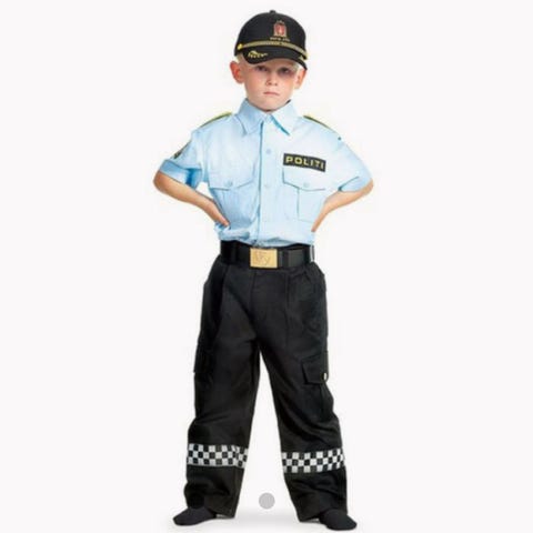 Politikostyme til barn. Størrelse 6-8år. Står ikke noe annet om størrelsen. 100% polyester.