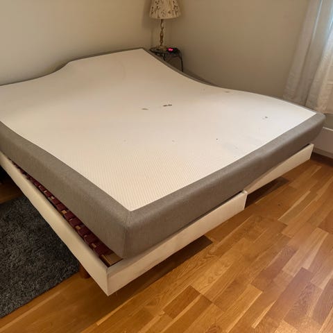 Som ny, lite brukt, ca 6år gammel, boxspring InetelliGel madrass, cevin dusty blue trekk. Står på treramme. Sengen kostet ca 30 000 ny. Overmadrass Svane Pure, elastec, ny ca 5000. Ved henting i dag kan pris diskuteres. Se bilder for detaljer.