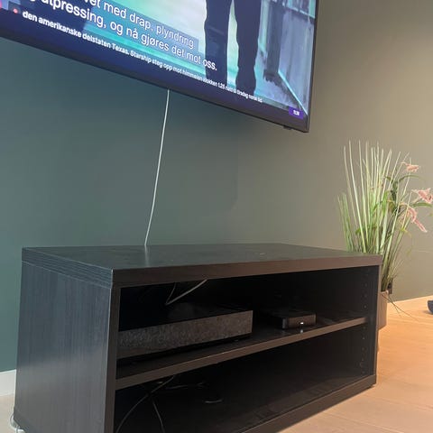 Selger en moderne og solid TV-benk i sort utførelse. Passer perfekt i stue eller TV-rom og gir et ryddig uttrykk. Benken har god oppbevaringsplass med skap og hylle, ideell for dekodere, spillkonsoller og annet utstyr.