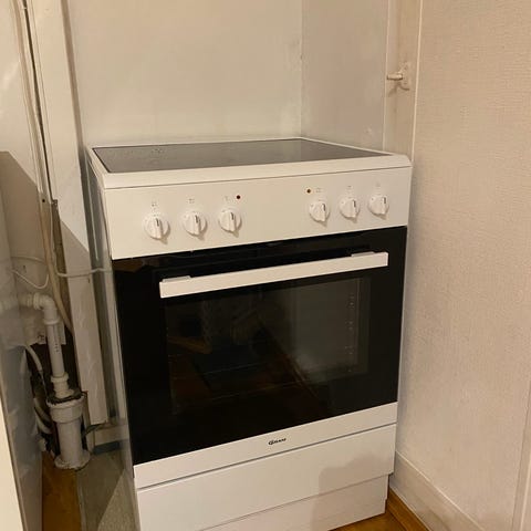 Gram keramisk komfyr med platetopp og stekeovn. Har varmluftfunksjon. Må hentes.