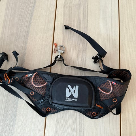 Non-stop Dogwear Trekking belte i størrelse M. Beltet er polstret for god komfort rundt livet og har justerbare stropper med kraftig plastspenne. Det har festepunkt foran til kobbel eller line, samt løkker for ekstra utstyr. Farge blå med svarte detaljer. Egnet til tur og trekking med hund.