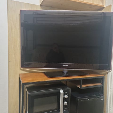 Skjermen på denne enheten viser vertikale linjer og bildeforstyrrelser, noe som fremgår av bildene. Produktet kan derfor være aktuelt som reservedels-TV eller for reparasjon. Øvrige funksjoner og tilstand er ikke testet utover dette som vises på bildene.