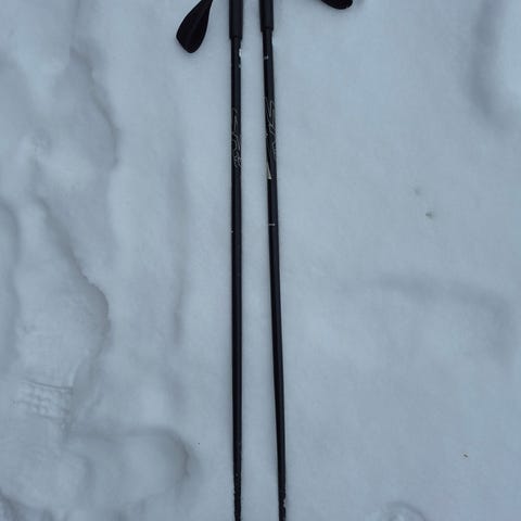 Leki Ultralite System skistaver til barn i svart. Lengde er merket 48" (120 cm). Stavene har håndtak med justerbare stropper og trinser med Leki-logo. Egner seg til bruk på ski der man ønsker lette og enkle staver med standard håndstropp og trinse.