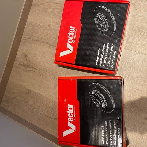 Volvo bremseklosser og bremseskiver. Delene på bildene inkluderer blant annet TRS Automotive WK713660440 og Vector BD4422 bremse skive samt Vector BP2086 bremseklosser. Produktene er beregnet for bruk i bremsesystem og kan passe til utvalgte Volvo‑modeller i henhold til produsentens spesifikasjoner og kryssreferanser oppgitt på eskene. Nøyaktig kompatibilitet bør kontrolleres mot bilens registreringsnummer eller originaldeler før montering.