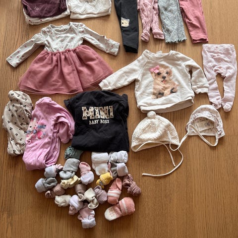 5 luer passer på størrelse 50-56 og 9 par sokker og 2 par riper