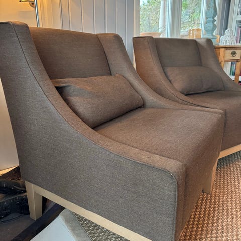 2 stk Henriette stoler fra Møbelringen selges da jeg har kjøpt andre stoler. Veldig pent brukte i fin brun/beige farge. Ny pris er 18699kr pr stk for disse, så her kan du gjøre et kupp! Kan bringes til Steinkjer/Levanger/Trondheim etter avtale.