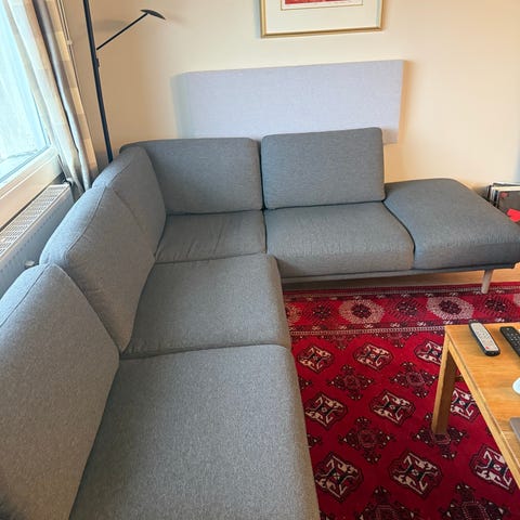 Den er god hjørnesofa, trekke kan vaskes og den har noen flekker. Jeg gir bort den Sofaen pga overgang til andre sofa. Jeg kunne ikke måle ordentlig sofaen.