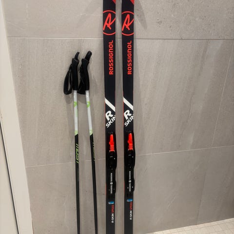 Rossignol R-Skin Speed R-Skin 130 langrennski i rød og grå farge. Skiene har integrerte Rossignol-bindinger montert. Undersiden har R-Skin-fell i festesonen for enkelt feste uten bruk av smøring. Passer til klassisk langrenn på preparerte løyper. Lengde på skiene er 130 cm.