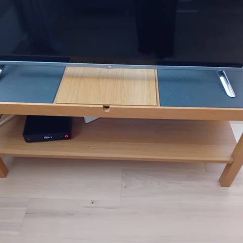 TV-benk fra IKEA, usikker på navn. Godt brukt, så har en del bruksmerker, men jeg tror den kan bli fin med litt maling.