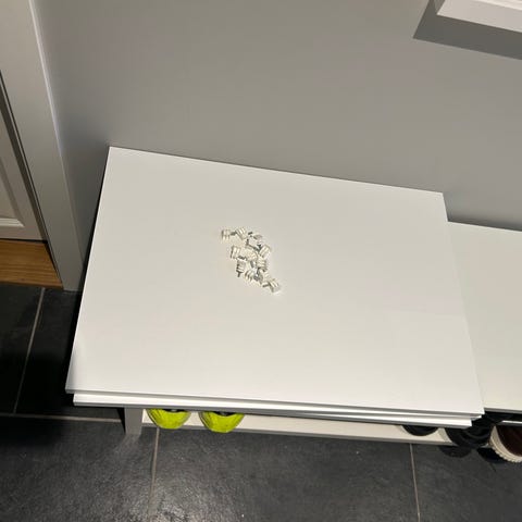 Hylleplater komplement fra IKEA på 50 x 58 cm, 5 stk. En helt ny, de andre har kanskje vært i bruk. Har nå bare blitt liggende. Selges for 50 kr pr stykke, til sammen 250.
