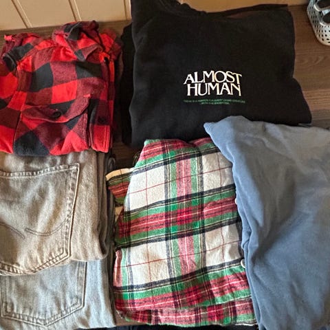 Selges pakken billig for å frigjøre plass. Pengene går til sønnen for å kjøpe nye klær.