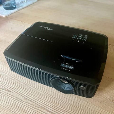 Prosjektorlerretet fra Elitescreens er nytt i pakke, og er 92 tommer.