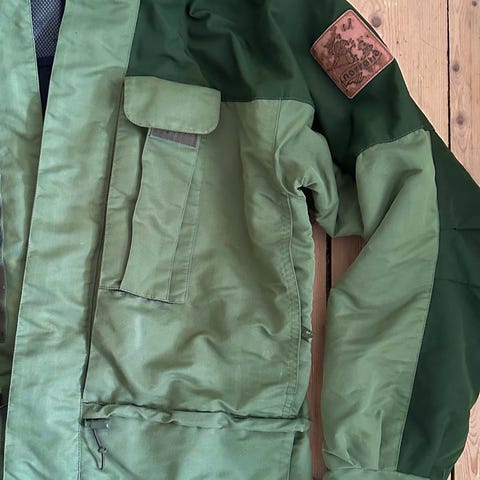 Skrå ventilasjonsglidelåser fra under erme til bak på rygg for enklere tilgang når man bærer sekk og for optimal ventilasjon. 2-veis glidelås i front.