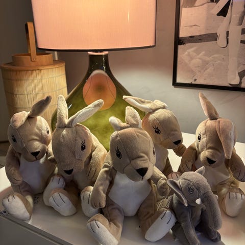 IKEA kosedyr elefant og giraff. Settet består av myke, grå elefanter i ulike størrelser og en høy, lys giraff med prikker. Kosedyrene er laget i tekstil med myk stopping og passer som lekekamerater på barnerommet eller som dekorasjon. Kan brukes av barn i ulike aldre under tilsyn etter behov.
